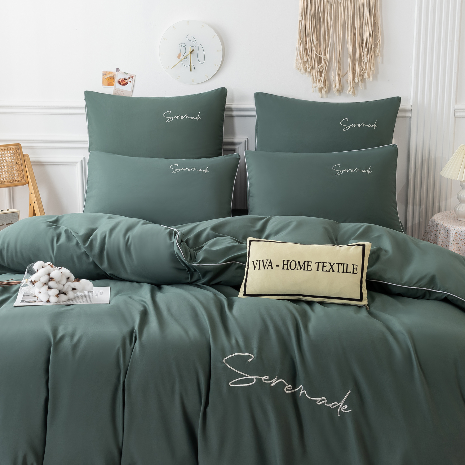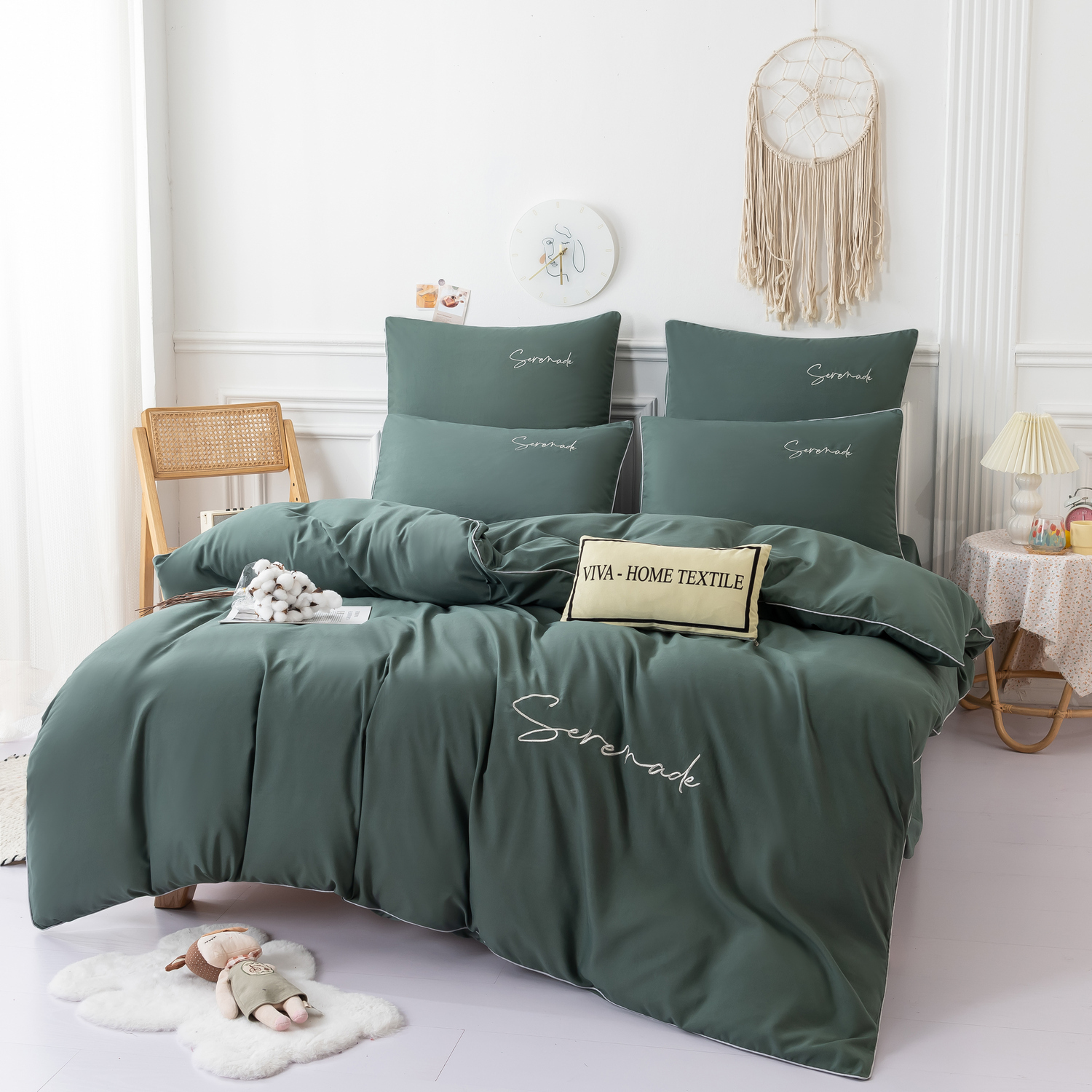 Пододеяльник и наволочки: Украшены вышивкой и кантом по периметру