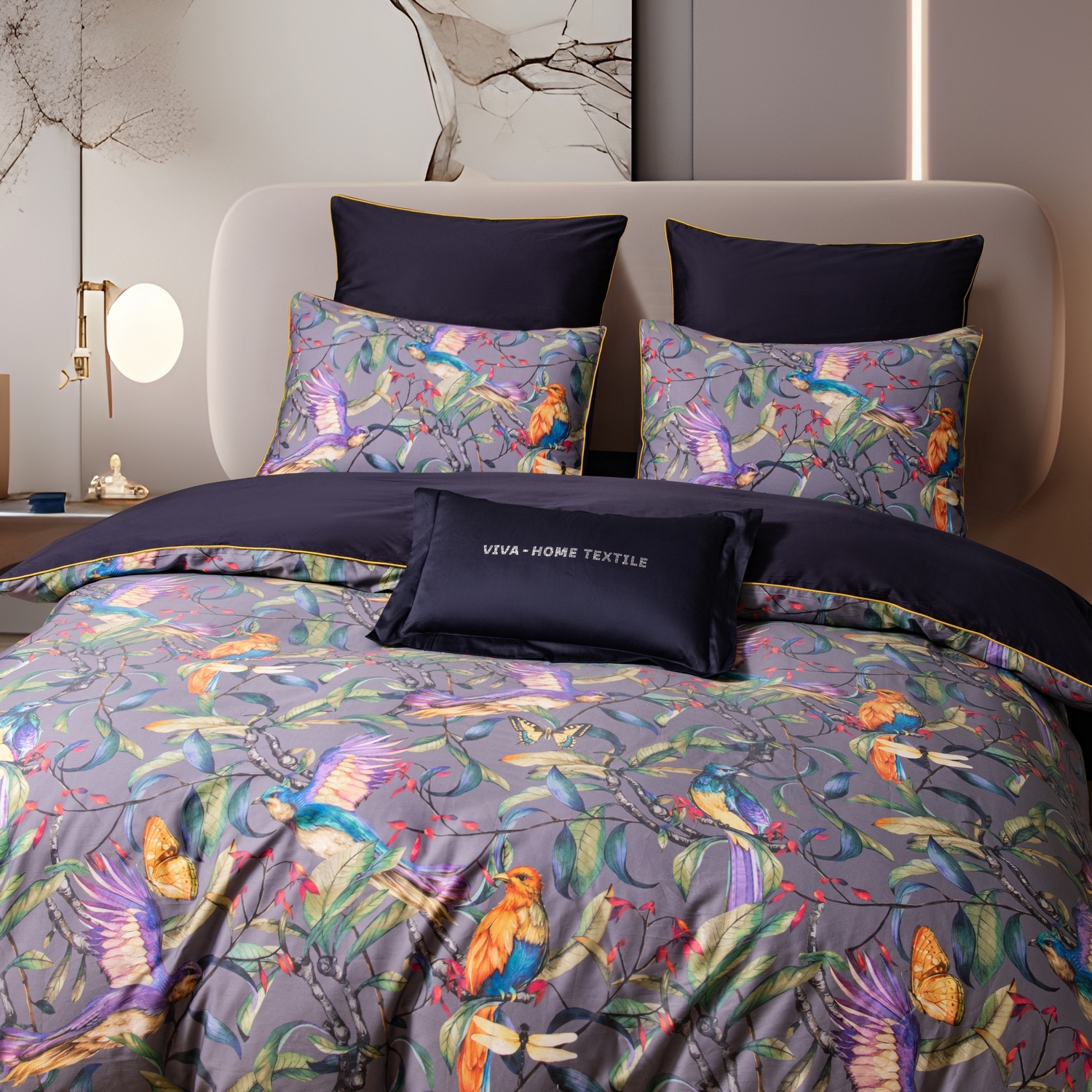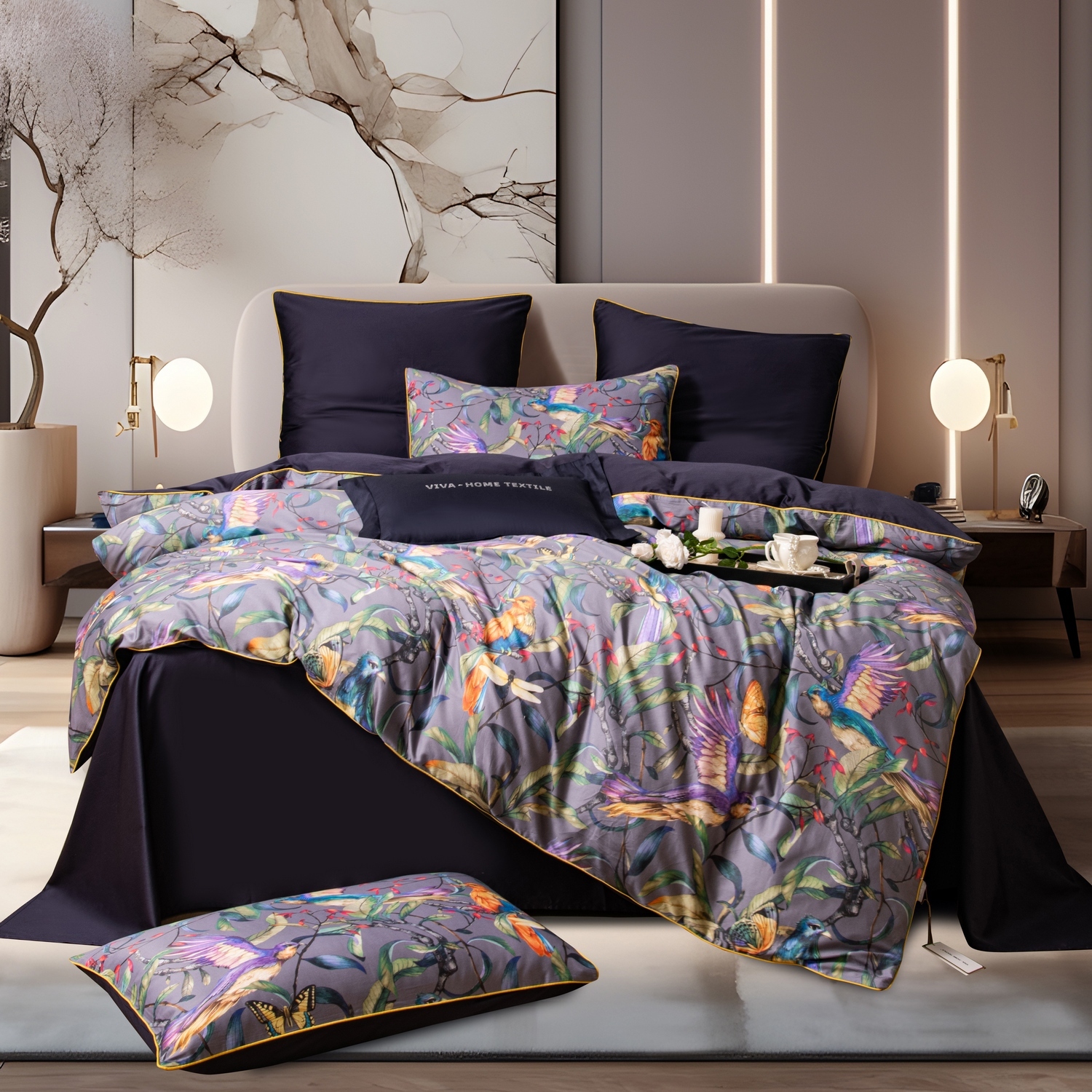 Мерсеризованный 100% египетский хлопок обладает более высокой прочностью, выдерживая до 1000 стирок, практически не мнётся и не даёт усадку, а также прекрасно сохраняет яркость и при этом не "красится". 3D печать на комплектах придает изделию необычайно насыщенные цвета и элегантный дизайн.