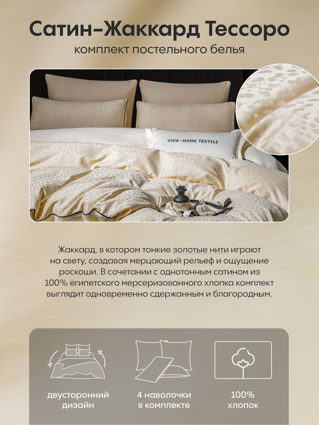 - Пододеяльник двусторонний: жаккард сверху и сатин снизу для максимального комфорта.