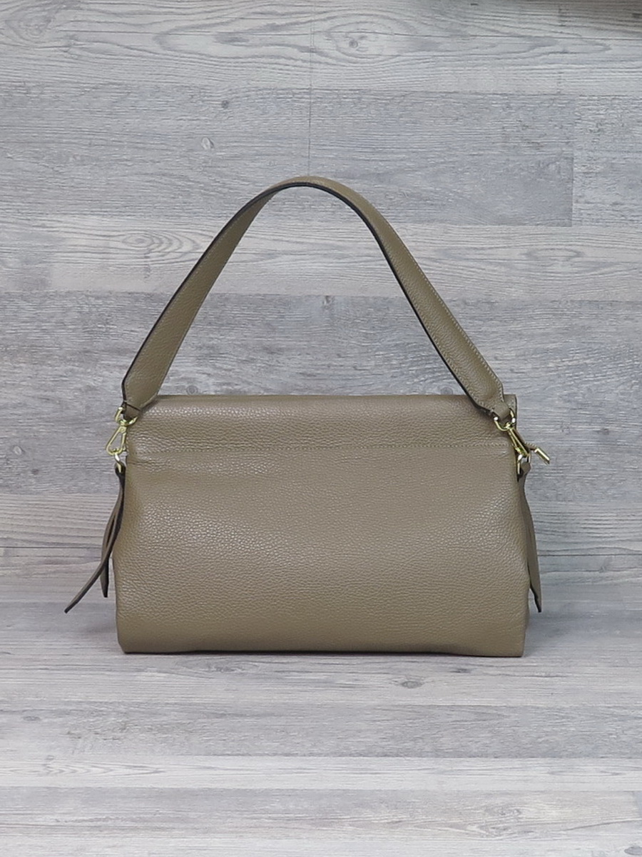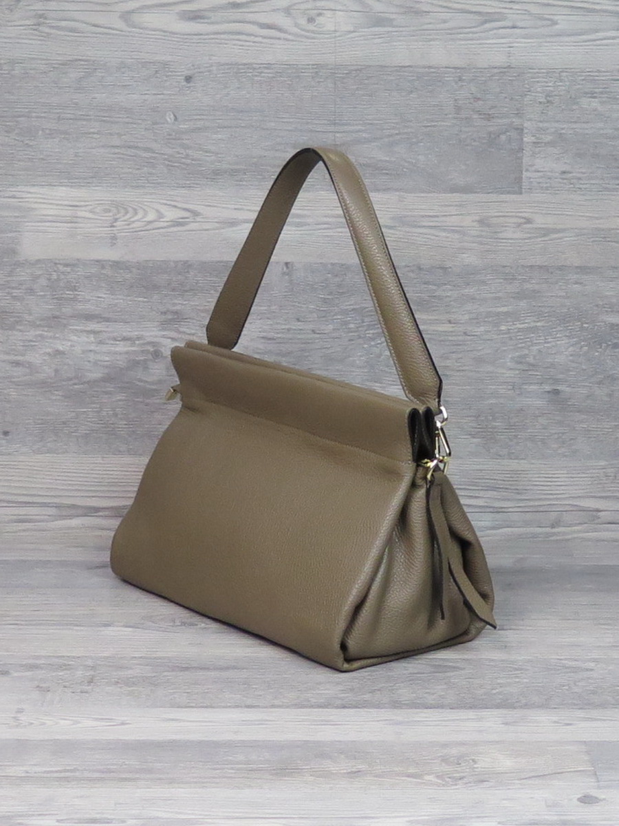 Внутри три отделения, середина на молнии, боковые карманы на магнитных клипсах.