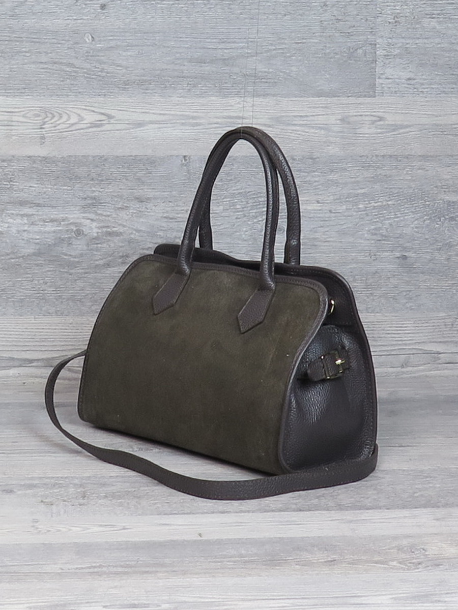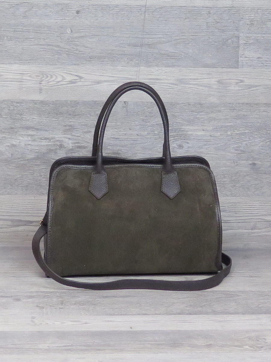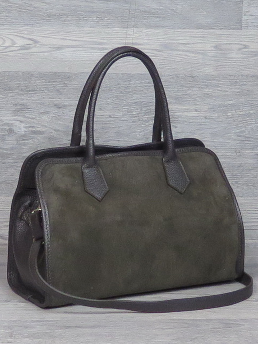 Сумочка закрывается на молнию, дно имеет металлические ножки.