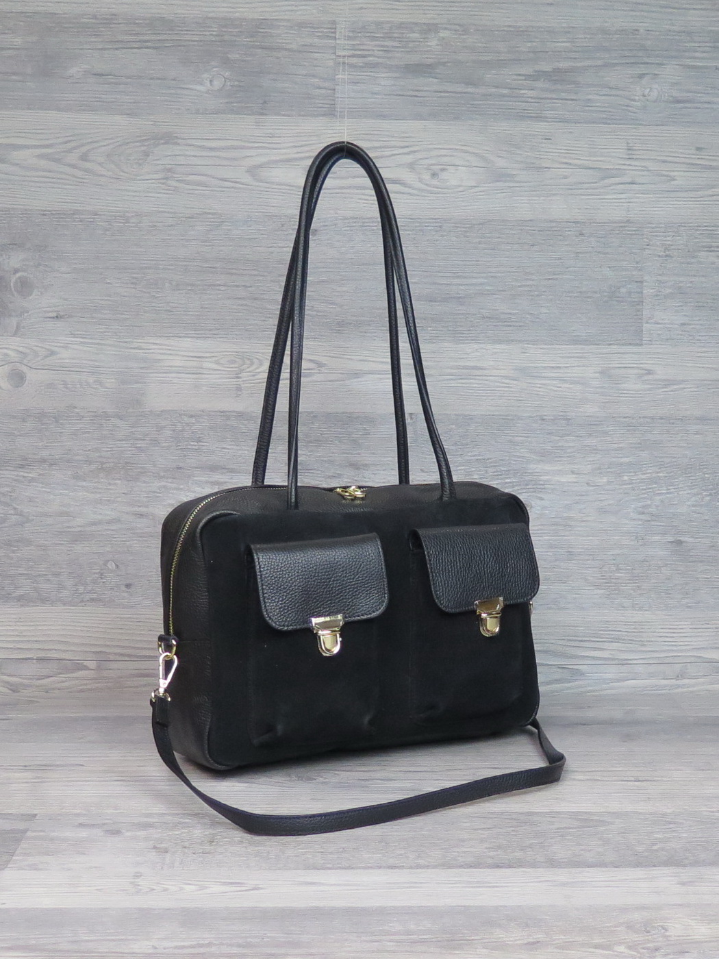 Женская сумочка с ручками Италия из натуральной кожи и замши.